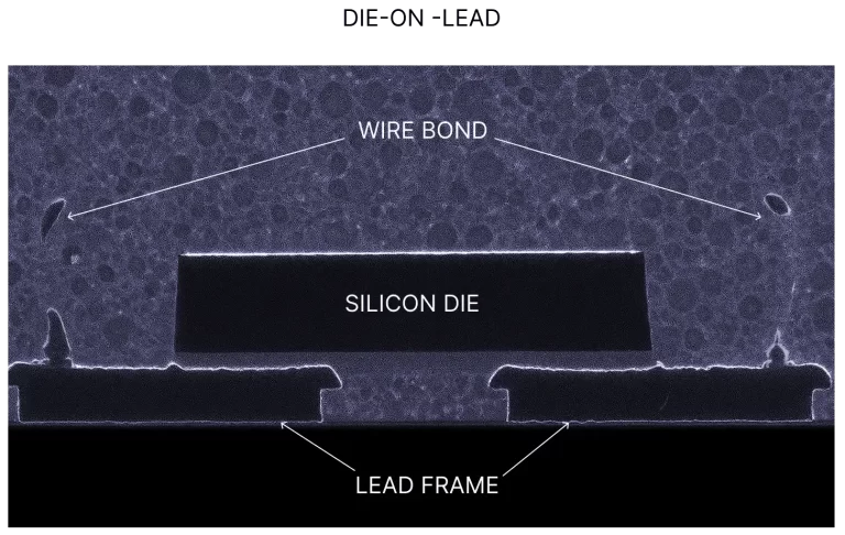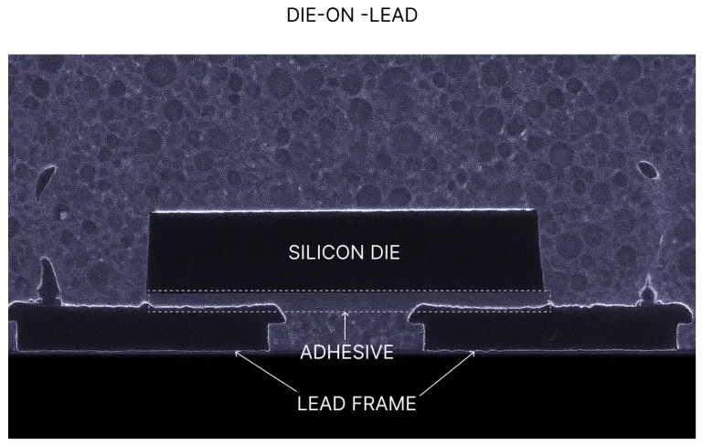 The die attach processes are classified based on the type of adhesive used. The image on the left Below illustrates a silicon die, adhesive layer, and lead frame.