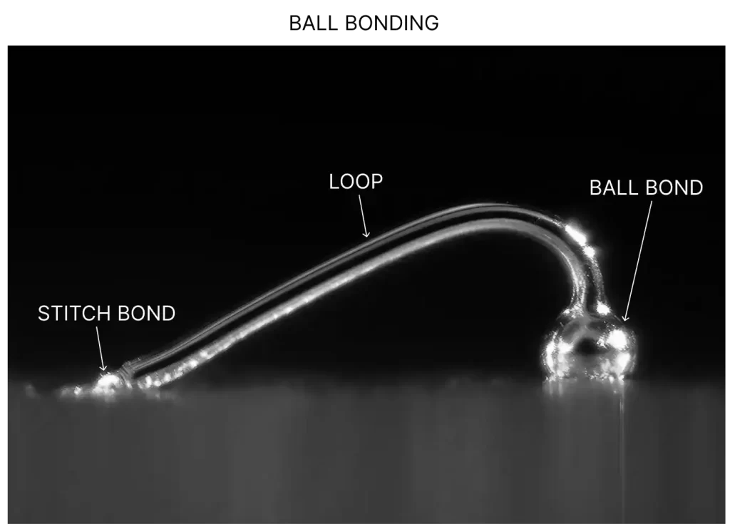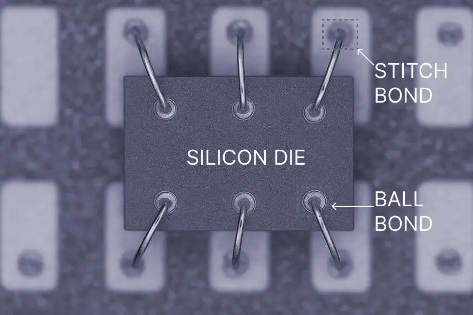 In the above (left) image, ball bond is made at the bond pad of silicon die and stitch bond is made at the bond pad of lead frame as depicted in the image to the right.