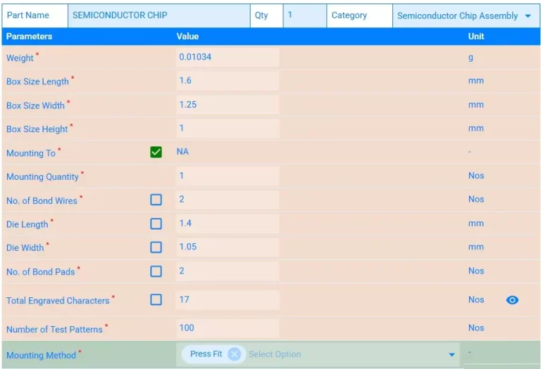A comprehensive Should Costing (SC) analysis was conducted in xcPEP to evaluate the assembly cost of the IC. The analysis determined that the approximate Assembly cost of the semiconductor was 111.797 INR. Should Costing involves developing assumptions and establishing general guidelines to ensure an accurate and thorough cost evaluation. For the IC assembly, several key assumptions were defined to support the analysis: –