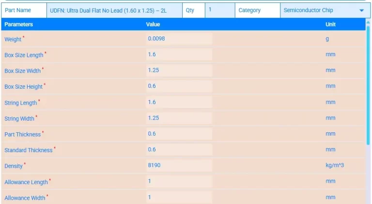 - For costing the assembly of “UDFN” package with 2 leads is considered.