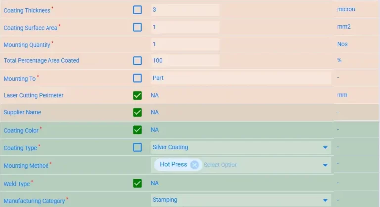- Plating metal type (Ag, Au, Pd, etc.)