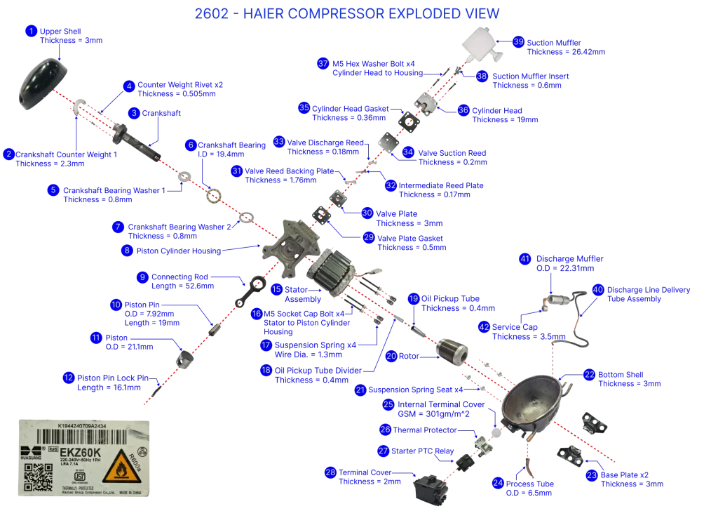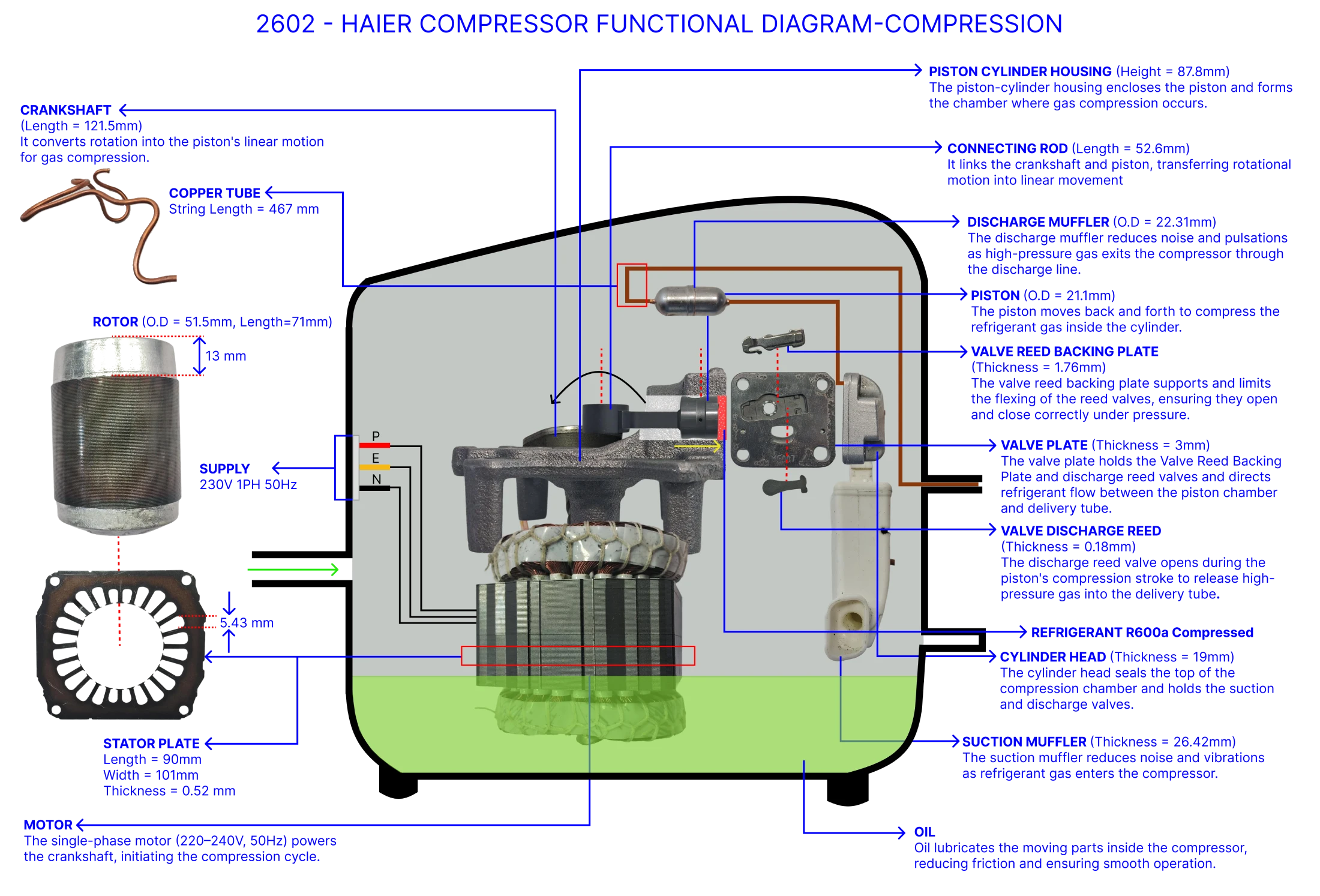 This compressor component breakdown allows us to identify material choices, manufacturing intricacies, and integration challenges, offering a structured view into refrigerator compressor cost drivers. Below are the primary elements analysed during teardown: