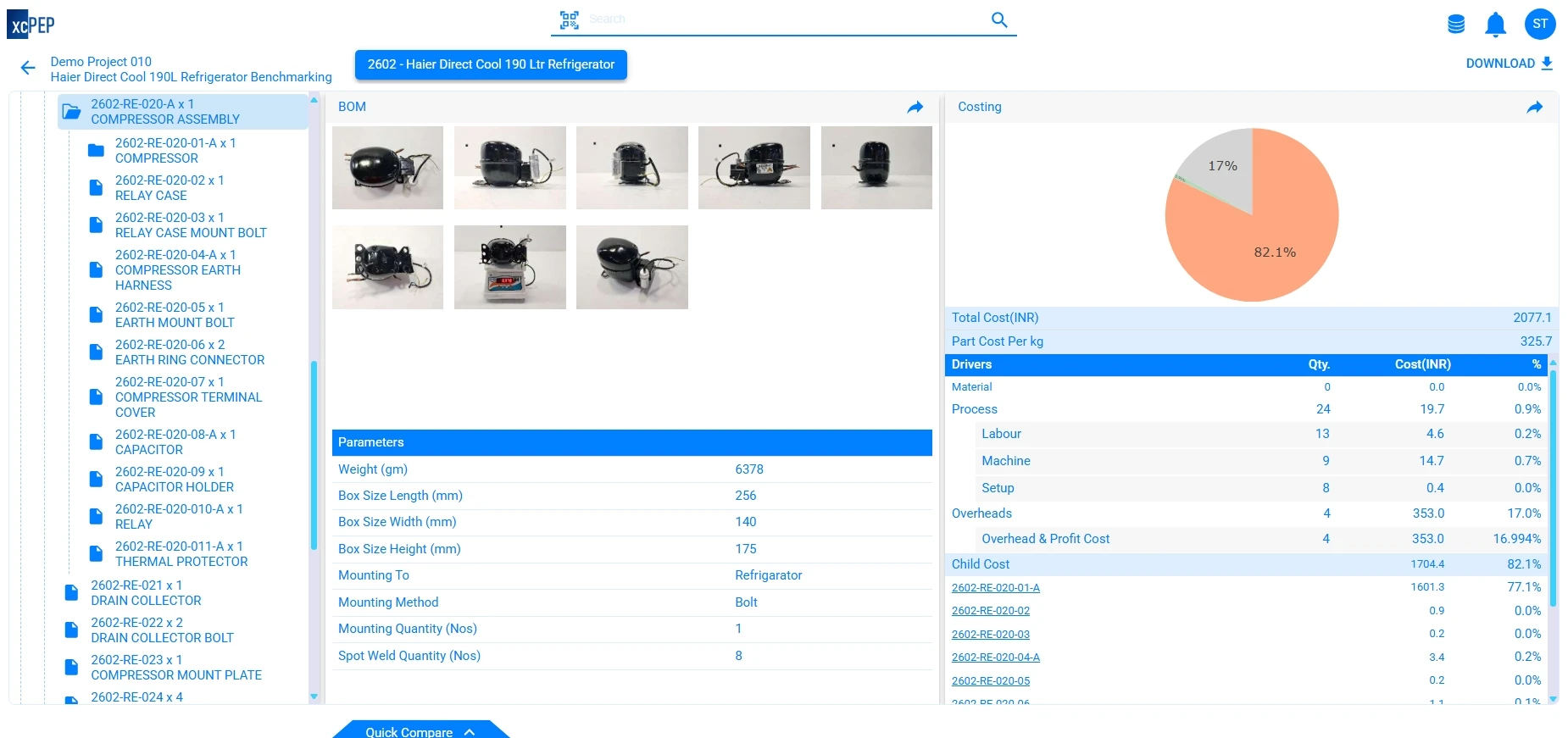 detailed teardown of the compressor helps us understand assembly complexity, component interdependence, and key cost-driving elements—critical to precise should costing and appliance benchmarking.